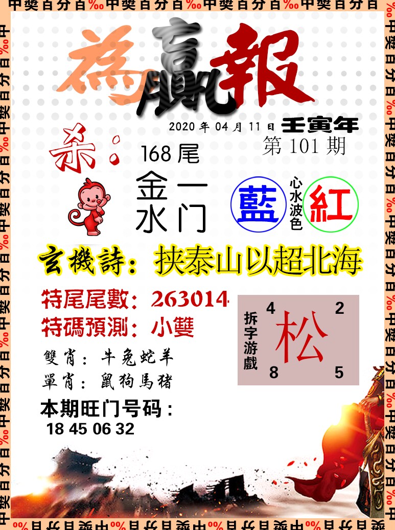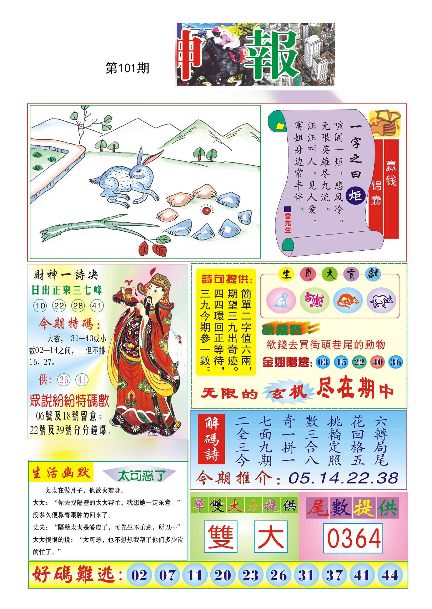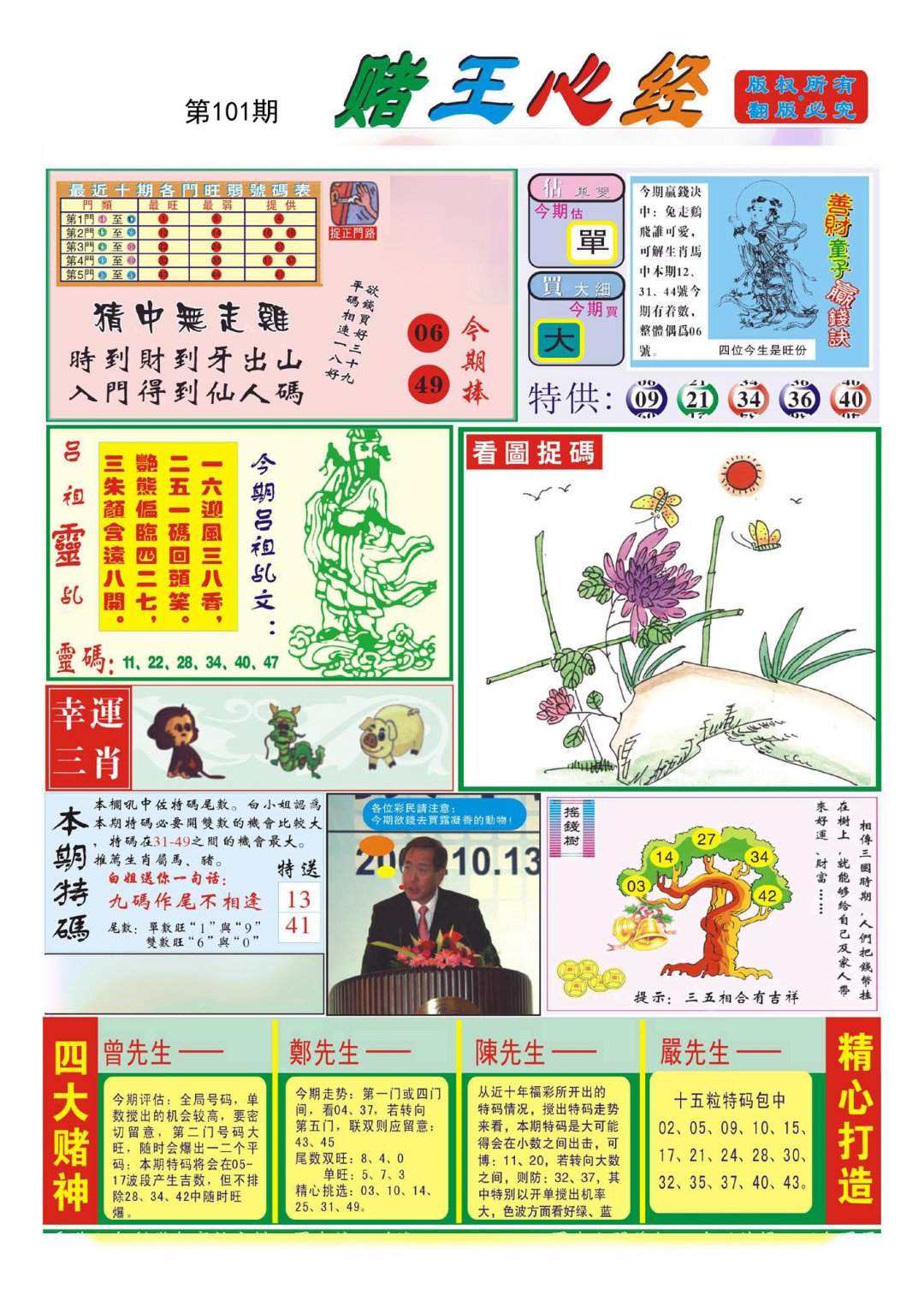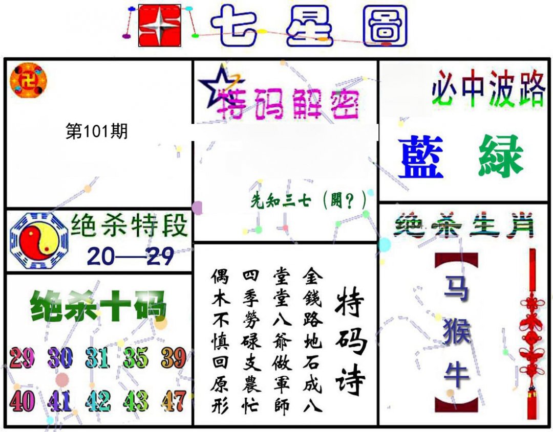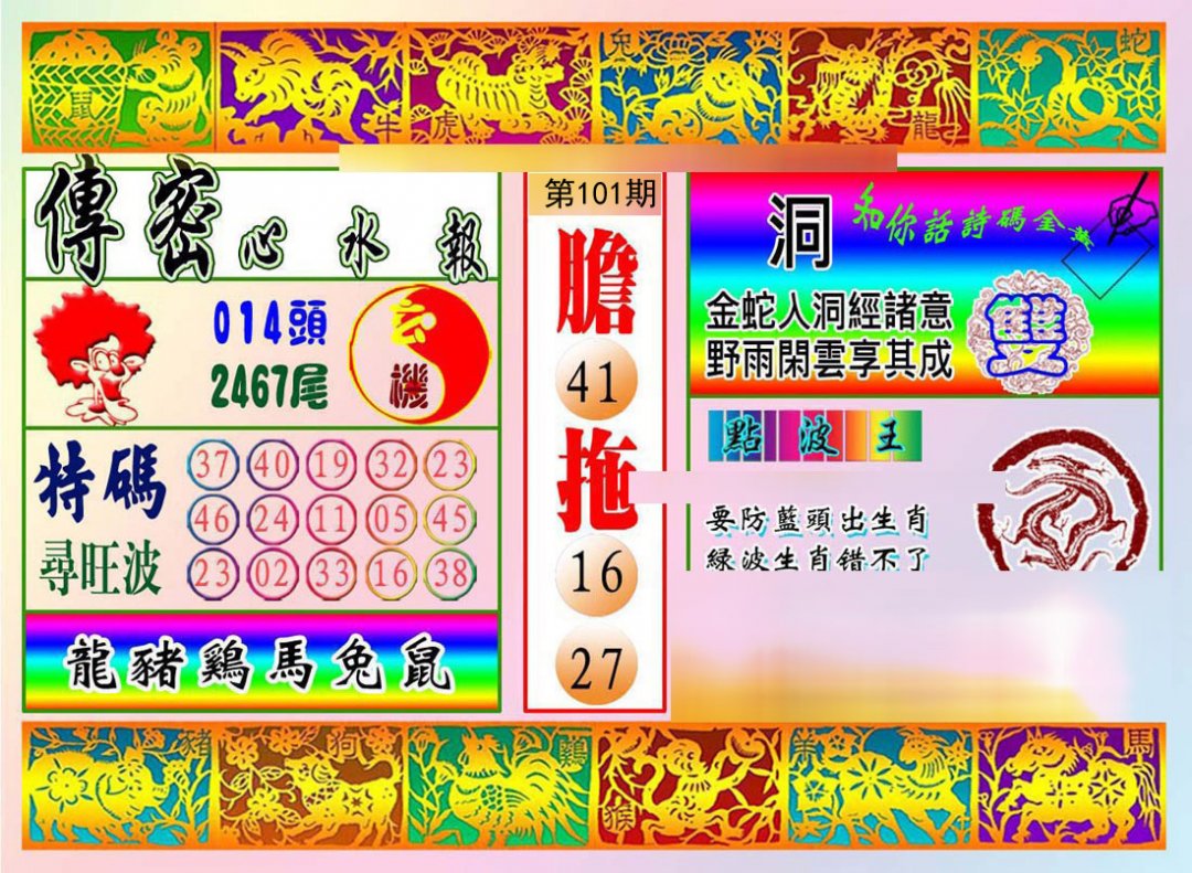 101期:规律四肖 【羊蛇鸡牛】开:?00 |
